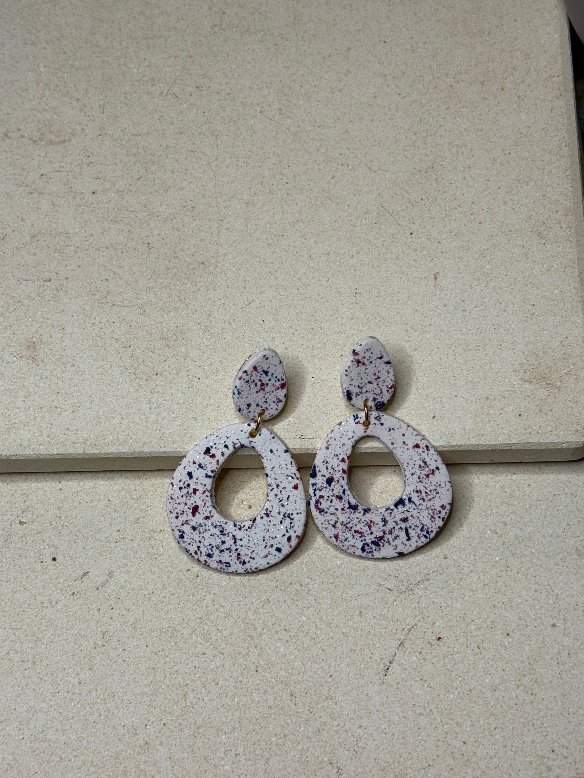 Celebrate freedom and festivity with our Star Spangled Collection — a spirited lineup of handcrafted clay earrings inspired by the bold colors and timeless symbols of Americana. Each pair is thoughtfully designed with playful stars, classic stripes, and pops of red, white, and blue, creating wearable art that honors the heart of summer gatherings, fireworks nights, and patriotic celebrations. Lightweight and joyful, these earrings are a charming way to add a touch of independence and pride to any outfit.